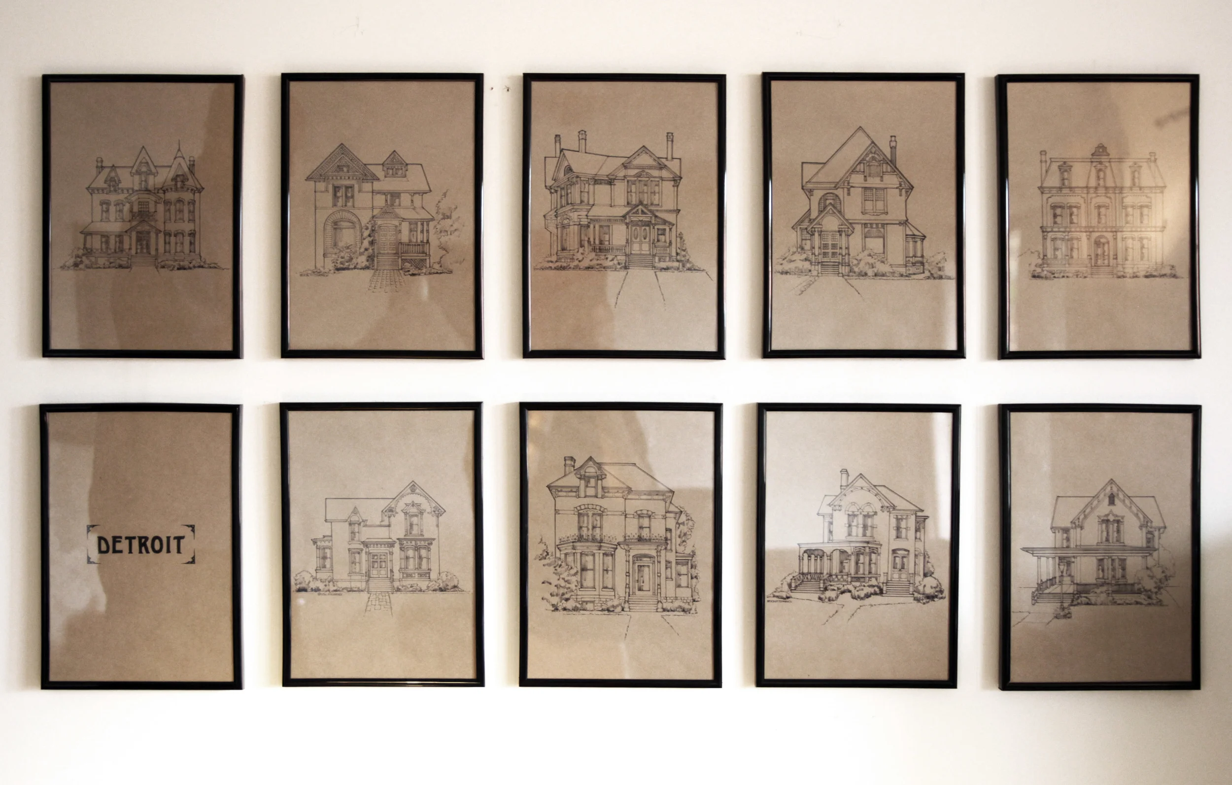 Detroit's Victorian-era homes caught the eye of Bryon during his years as Chair of Transportation Design at the College for Creative Studies. Bryon was enchanted with the houses, constructed with details and techniques long since forgotten. Even those in disrepair he re-imagined as whole again. These painstakingly hand-drawn illustrations are of private homes nestled on the brick-paved street in the West Canfield Historic District in Midtown, and all around Detroit--Brush Park, Woodbridge, and Boston Edison.